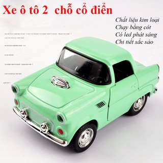Xe mô hình đồ chơi ô tô 2 chỗ phong cách cổ điển, chất liệu kim loại chạy cót có led phát sáng (màu ngẫu nhiễn)