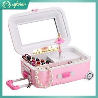 [sylviar] Hộp Nhạc Đựng Trang Sức Hình Vali Vẽ Hoạt Hình Bé Gái Có Bánh Xoay