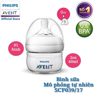 Bình sữa mô phỏng tự nhiên Philips Avent SCF039/17 ( 60ml) cho bé từ 0 tháng tuổi ( bình nhựa 60ml )