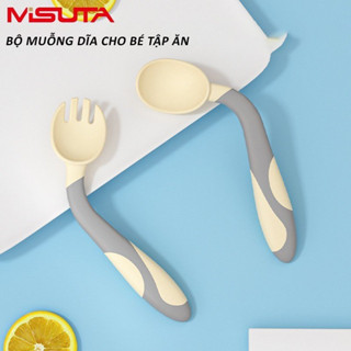 Thìa Dĩa Misuta Cho Bé Tập Ăn Tập Xúc Chất Liệu Silicon Cao Cấp An Toàn Có Thể Bẻ Cong 360 Độ Giúp Bé Ăn Ngon Chơi Vui