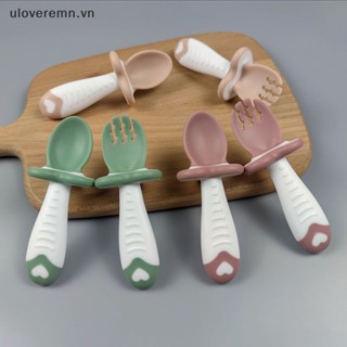 Bộ Muỗng Nĩa Bằng Silicon Mềm Tay Cầm Ngắn Dành Cho Bé Tập Ăn