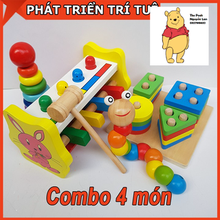 Combo Đồ Chơi Gỗ 4 Món: Đập chuột thỏ, thả hình 4 trụ, cầu vồng nhỏ, sâu gỗ uốn dẻo- The Pooh