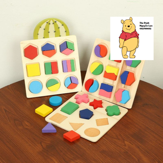 Bộ xếp các khối hình học bằng gỗ giúp bé phát triển trí tuệ sớm - Đồ chơi cho bé - Đồ chơi gỗ