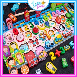 Bộ Bảng Gỗ Câu Cá Và Ghép Hình Học Chữ Số Chữ Cái Phương Tiện cho bé - LANA QUEEN