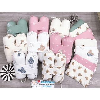 Combo full set chăn -gối- chặn đa năng- yếm- khăn sữa xô muslin cao cấp cho bé yêu