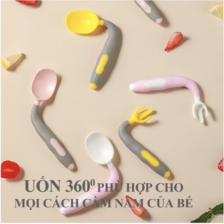 Bộ thìa dĩa uốn cong silicon cho bé tập xúc