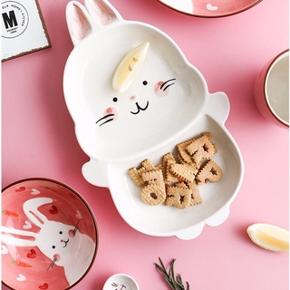 Bát Ăn Dặm Cho Bé Kiểu Nhật, Chén Ăn Dặm Chất Liệu Gốm Sứ Hình Thỏ Trắng