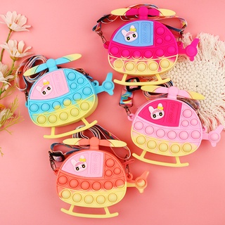 Pop it Túi Đeo Chéo Vai Hình Cánh Quạt Màu Cầu Vồng Kỳ Lân Dành Cho Trẻ Em Ngoài Trời