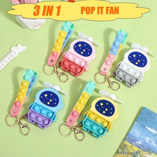 Đồ Chơi Quạt Cầm Tay Mini 3 Trong 1 Đa Chức Năng Bằng Silicone Có Móc Khóa Pop it Fidget