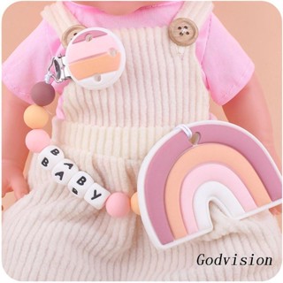 Bộ 2 Dây Kẹp Núm Vú Giả Bằng Silicone Màu Cầu Vồng Cho Bé