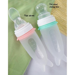 Bình Thìa Ăn Dặm Cá Heo Silicon Tặng Kèm Túi Nhai Hoa Quả Cho Bé