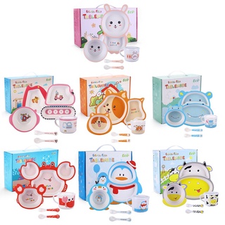 Khay ăn dặm cho bé sợi tre tableware gồm 5 chi tiết gồm thìa, dĩa, khay, bát, cốc dành cho bé