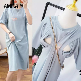 Áo thun AMILA dáng rộng hỗ trợ chăm sóc bé thời trang mùa hè dành cho mẹ bầu