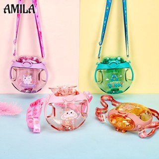 Bình Đựng Nước AMILA Bằng Nhựa Họa Tiết Hoạt Hình Dễ Thương Kèm Ống Hút Nhỏ Gọn Cho Học Sinh
