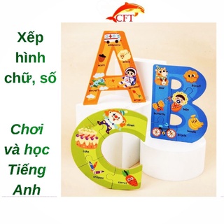 Xếp hình cho bé bộ ghép hình puzzle chữ cái chữ số in hình con vật cao cấp giúp bé chơi và nhớ chữ cái chữ số