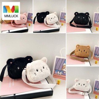 Túi Đeo Chéo Hình Mèo Hoạt Hình Phủ Lông Mềm Mại Dễ Thương Cho Bé Gái