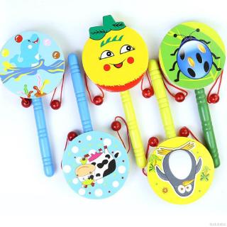 Trống lắc bằng gỗ thiết kế họa tiết hoạt hình xinh xắn dành cho bé
