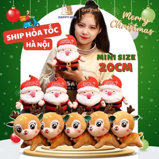 Ông Già Noel Hươu đeo chuông, Gấu bông, Quà tặng Giáng Sinh cho bé size mini 20cm chất liệu bông gòn cao cấp - Happy Hug