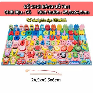 Bộ đồ chơi bảng gỗ 7in1 câu cá kèm số tư duy, chữ cái, trái cây, động vật cho bé