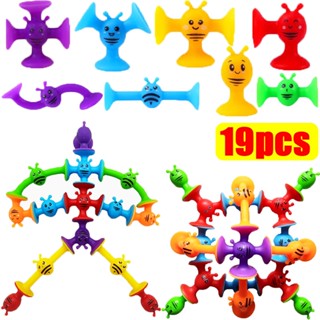 Bộ Đồ Chơi Xếp Hình 19 Món Bằng Nhựa Bền Bỉ Có Giác Hút Cho Trẻ Em
