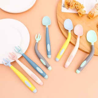 Set 2 Muỗng Nĩa Silicon Mềm Trọng Lượng Nhẹ Cho Bé Tập Ăn
