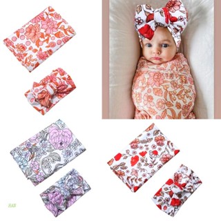 Chăn Quấn Em Bé In Họa Tiết Hoa Kèm Băng Đô Xinh Xắn