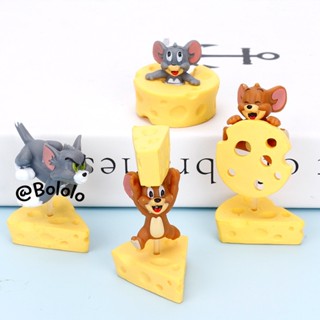 Bololo Set 4 Đồ trang trí Mèo Và Chuột Phô Mai Dễ Thương Trang Trí Bánh Kem