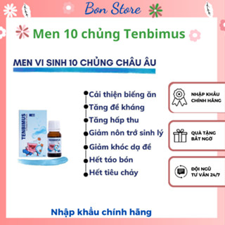 🎁Hướng dẫn sử dụng Men vi sinh Tenbimus, Men vi sinh Tenbimus, Men vi sinh, Men tiêu hóa, Tăng đề kháng cho bé: - Trẻ sơ sinh và trẻ dưới 12 tháng tuổi: 5 giọt/lần/ngày - Trẻ em trên 12 tháng và người lớn: 5 giọt/lần , 1-3 lần/ngày - Nếu dùng Men vi sinh cùng kháng sinh thì cần uống trước hoặc sau khi dùng kháng sinh ít nhất 2-3 giờ - Lắc đều trước khi dùng - Lấy 5 giọt Men vi sinh Tenbimus đổ ra thìa cho trẻ uống trực tiếp hoặc thêm vào cùng sữa, nước hay đồ ăn thích hợp *Lưu ý:Sản phẩm này không phải là thuốc và không có tác dụng thay thế thuốc chữa bệnh