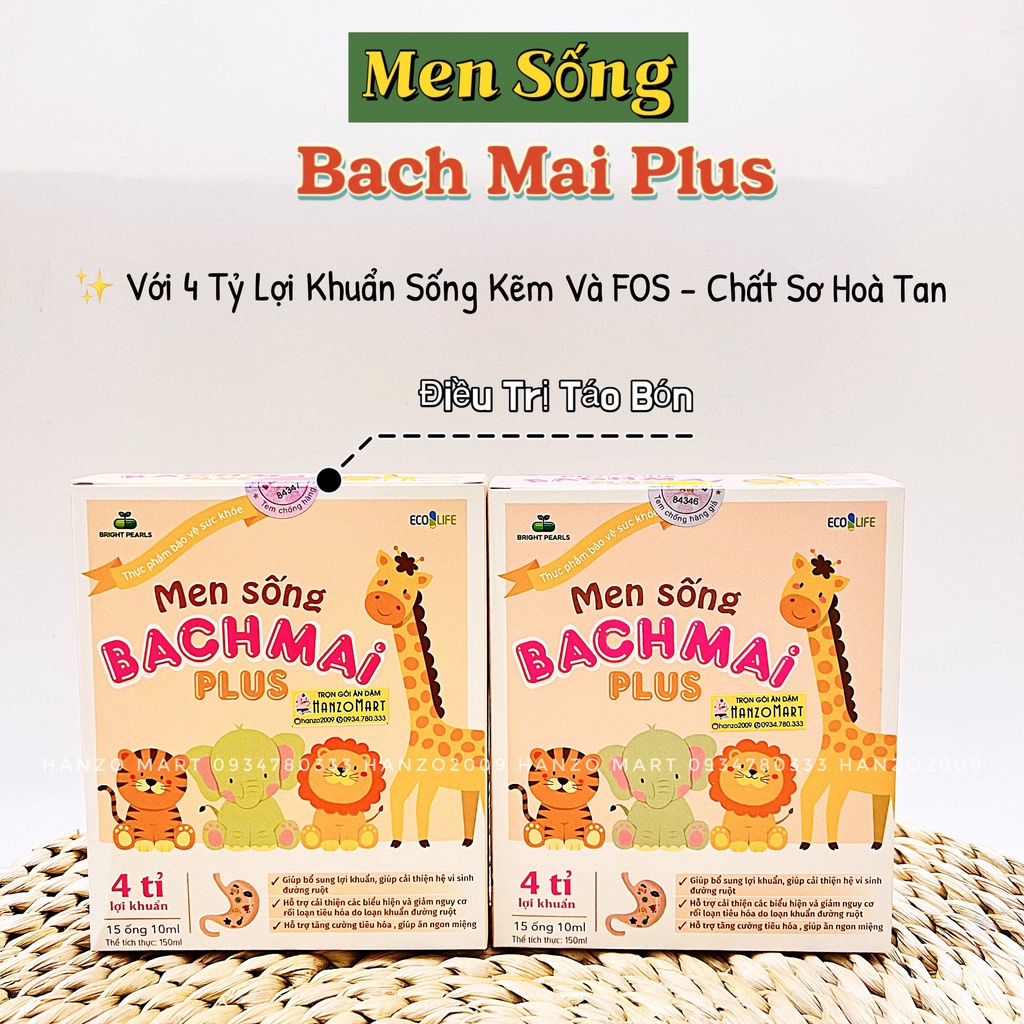 Men sống bạch mai plus chứa chất xơ và 4 tỷ lợi khuẩn bé hết táo bón,Rối loạn tiêu hóa,Biếng ăn-Men sống hữu cơ Bạch Mai - Xuất xứ: Việt Nam - Hạn sử dụng: 36 tháng Men sống bạch mai plus được các mẹ vô cùng ưa chuộng bởi mỗi ống có chứa: - 4 tỷ lợi khuẩn có lợi cho đường tiêu hoá, gấp 30 lần so với các sp men thông thường - Chứa hàm lượng chất xơ cao, chất xơ có nhiều trong các sp giàu chất xơ: táo, chuối và các loại đậu - Kẽm gluconate dễ hấp thu phục vụ cho những bé gặp vấn đề như tiêu chảy, phân sống, sức đề kháng kém,... 🌱🌸🌿 Với hương vị nhạt thanh vô cùng dễ uống thực sự phù hợp với tất cả các bé từ 6 tháng tuổi trở lên 🌸🌱🍃 ❌ HDSD :