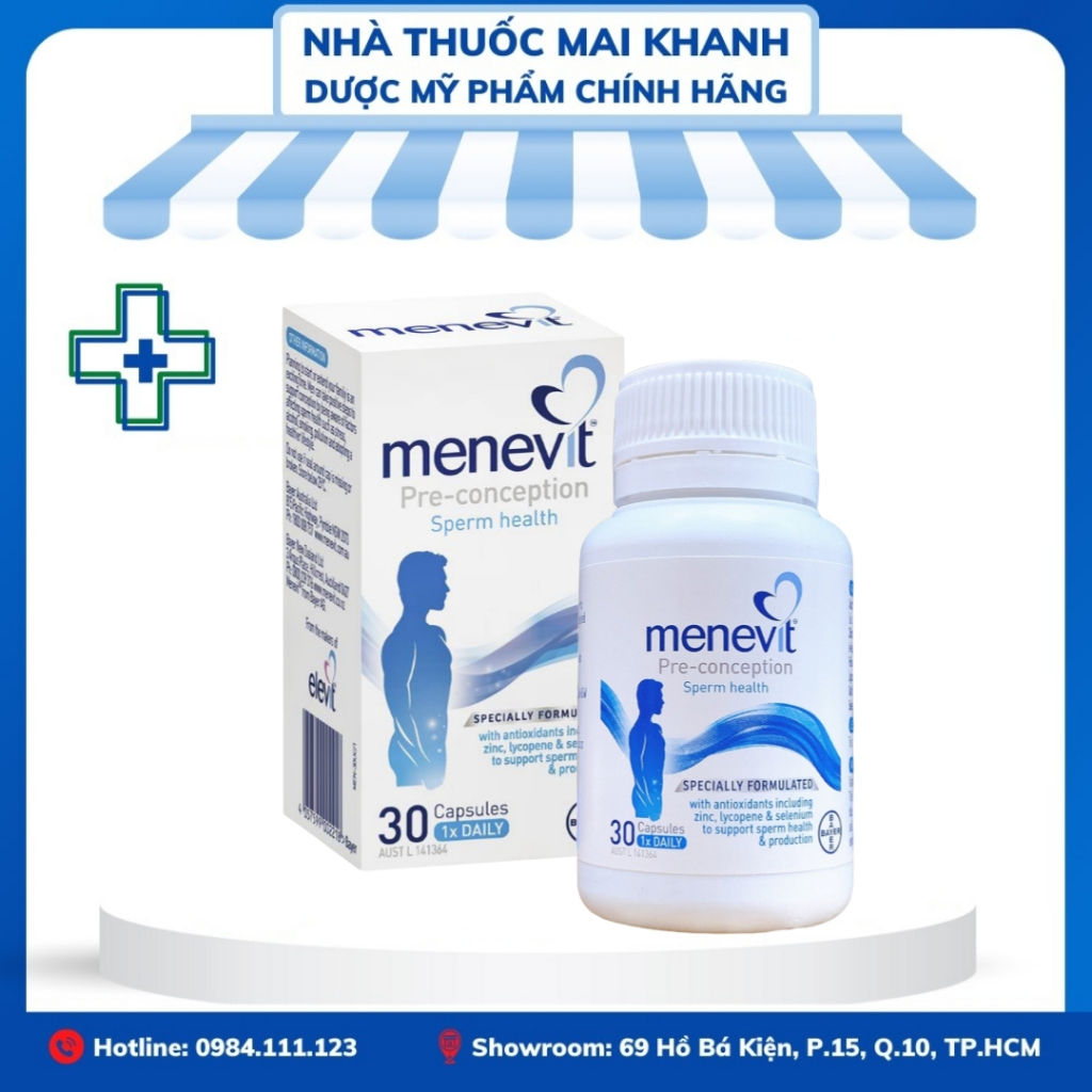 Menevit giúp cải thiện và nâng cao chất lượng tinh trùng. Các chất chống oxy hóa trong Menevit hỗ trợ: – Tăng nồng độ tập trung tinh trùng – Cải thiện khả năng vận động của tinh trùng – Cải thiện sự hợp nhất tinh trùng-trứng – Phát triển tinh trùng bình thường – Bảo vệ chống lại thiệt hại DNA Hãng sản xuất: Bayer Australia Nguồn gốc: Nhập nguyên thùng từ Úc – Made in Australia
