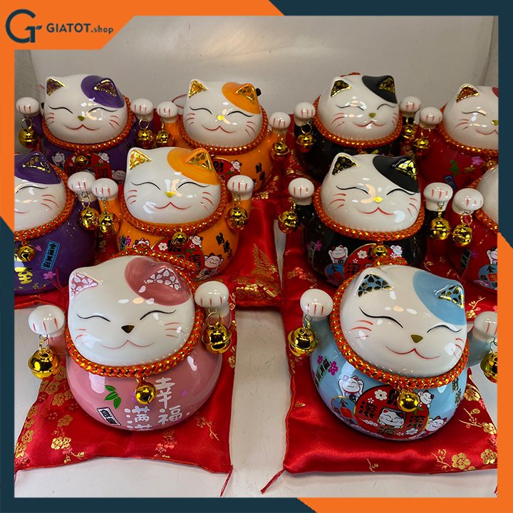 Giới thiệu Mèo thần tài may mắn Maneki Neko 10cm kiêm hũ tiết kiệm