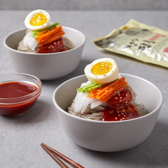 🔶 HƯỚNG DẤN SỬ DỤNG *** Mì lạnh nước dùng: + Luộc mì sau đó xả qua nước lạnh, để ráo + Pha loãng gói nước dùng nguyên chất với nước, sau đó để vào tủ lạnh ngăn mát + Để mì ra tô, chan nước dùng và bỏ vào tô đá để giữ độ lạnh trong lúc ăn + Để thêm lên tô 1 quả trứng cắt đôi, hành lá, dưa leo cắt sợi, kimchi tùy sở thích *** Mì lạnh trộn: + Cho mì vào nước sôi và luộc trong 4 phút. Sau đó vớt ra và xả qua nước lạnh. + Cho mì vào tô rồi trộn đều cùng sốt bibim. Càng ngon hơn khi cho thêm dưa chuột, lê, trứng,…