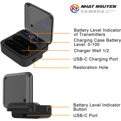 ĐẶC ĐIỂM - 2.4Ghz kênh đôi Mini mic-rô không dây - Micro tích hợp từ tính nhỏ gọn và nhẹ, độc đáo - Bản ghi 48kHz/24bit, chất lượng âm thanh cấp phát sóng - USB đầu ra kỹ thuật số, phổ biến cho máy tính và điện thoại - Vô cấp điều chỉnh âm lượng, tắt tiếng một phím và denoise - Cổng sạc/giám sát USB-C, hỗ trợ truyền qua sạc điện thoại - Hỗ trợ giám sát với độ trễ bằng không và công tắc Mono/stereo - Hộp đựng có thể sạc lại để sạc, lưu trữ và giám sát nguồn điện - Thời lượng lên đến 15 giờ, hỗ trợ sử dụng trong khi sạc - Độ trễ thấp <20ms, Phạm vi hoạt động lên đến 200m (khu vực mở) - Cắm và chạy, di động để ghi âm tiktok đi du lịch rất tiện lợi