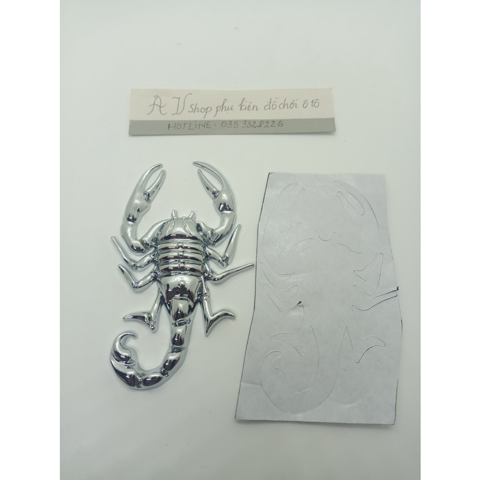 miếng dán bọ cạp bằng kim loại nguyên khối đã có miếng dán đi kèm - Sản phẩm có màu BẠC - Miếng dán kim loại bọ cạp được làm bằng kim loại nguyên khối. giúp phần tăng độ cá tính - thể thao cho chiếc xe của bạn. - Có sẵn băng keo 2 mặt dán cực kì chắc chắn không lo bị bong khi đi trời mưa #miengdantrangtri #miengdan3D #miengdankimloai