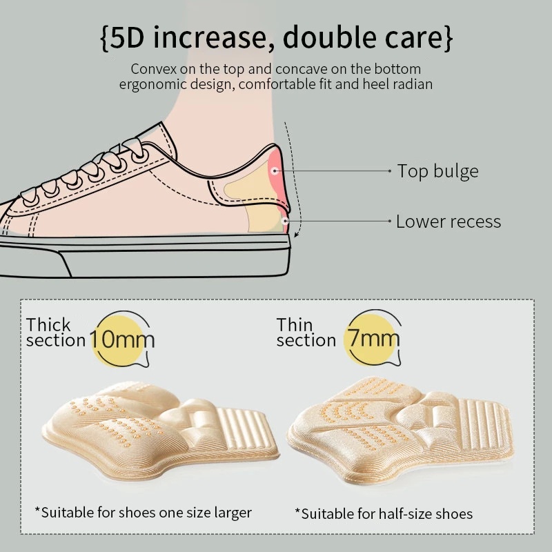 Thiết kế tiện dụng của lồi trên và lõm dưới, thoải mái vừa vặn với vòng cung gót chân Có thể cắt để phù hợp với nhiều loại giày, có thể cắt theo chiều cao của trên Chất liệu keo chống trượt + xốp, 180° Chăm sóc cho đôi chân của bạn Phần mỏng: sử dụng khi độ dày 7mm / kích thước giày vừa phải Phần dày: dày 10mm / cỡ giày lớn hơn một cỡ
