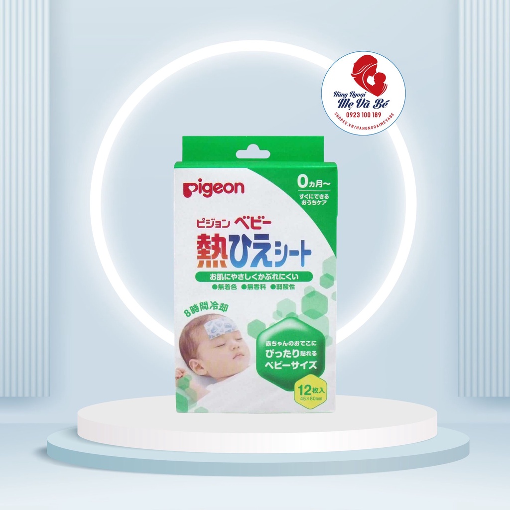 Miếng dán hạ sốt Pigeon gồm 12 miếng, có kích thước phù hợp với trẻ sơ sinh, giúp hạ sốt nhanh chóng, phòng ngừa co giật do sốt cao cực kỳ hiệu quả mà không gây tác dụng phụ, dùng để dán trên trán, vai, má. Mỗi miếng có tác dụng tới 8 tiếng.,độ ẩm trong có trong gel tác dụng hấp phụ nhiệt và bay hơi ra ngoài, giúp phóng thích nhiệt, độ lạnh không cao nên sẽ không làm bé bị lạnh đột ngột.