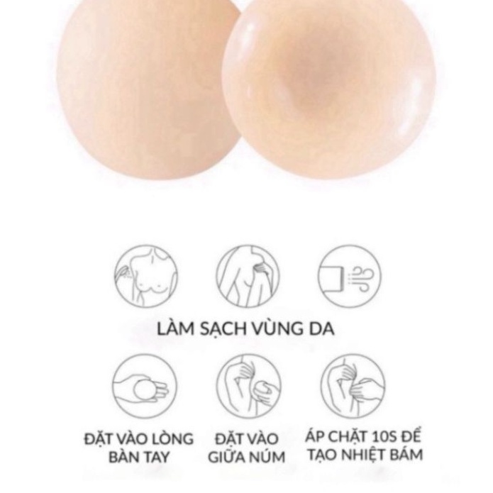 Mô tả sản phẩm: - Số lượng: 6 Miếng dán ngực - Chất liệu: Silicon - Không keo, siêu dính - Đặc Điểm: + Chất liệu silicon mền mỏng và có màu sắc giống như da thật, khi dán lên sẽ cho cảm giác rất thật và rất khó nhận ra bằng mắt thường. + Cơ chế tự dính bám khít lên bề mặt tiếp xúc, ôm sát mà không cần keo bết dính. + Siêu mỏng nên không bị cộm để chúng ta thoải mãi diện những bộ đồ mỏng, váy đầm. + Ôm sát, diện tích đủ để che hết đầu ti và bo tròn vòm ngực giúp chị em đình hình vòng 1 rất tự nhiên và hấp dẫn. + Không dùng keo hóa học nên không sợ bị bám bụi, bám bột vải, và các bụi bẩn khác + Thoáng khí, không gây cảm giác bí khí, o bức + Dễ dàng lau rửa vệ sinh một cách đơn giản + Độ bền cực cao, có thể chịu đc lực tác động lên đến 50kg + Có thể dùng được trên 1000 lần.