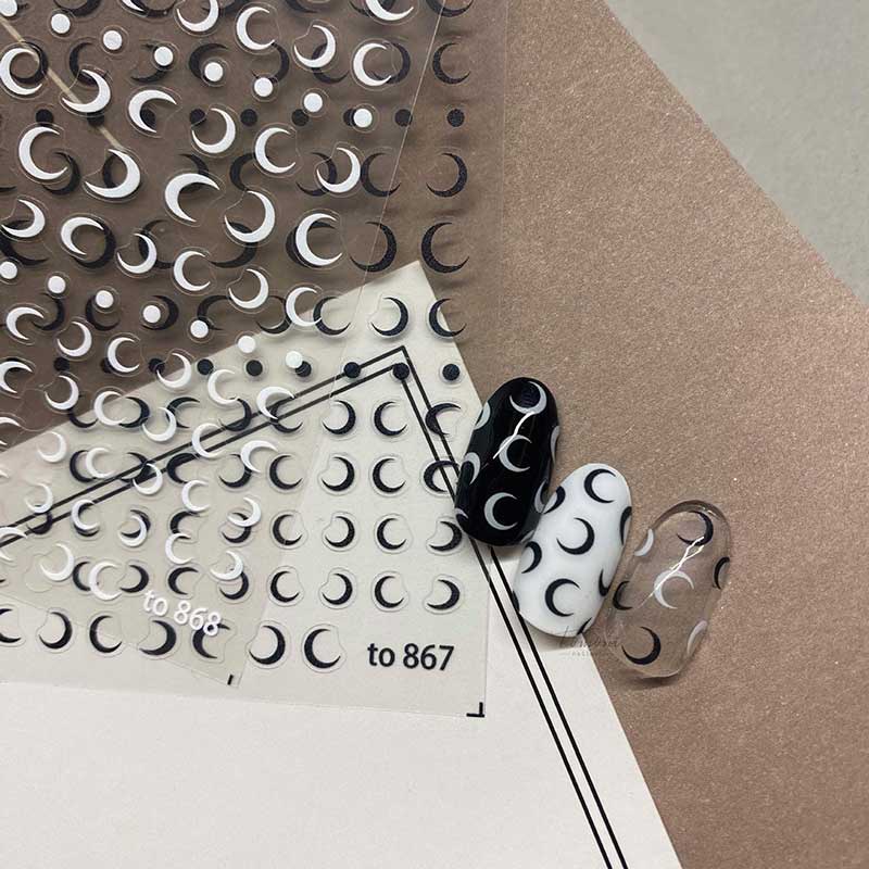 Giới thiệu Miếng Dán Trang Trí Móng Tay Hình Mặt Trăng/Mặt Trăng 3D Màu Đen/ Trắng Siêu Mỏng