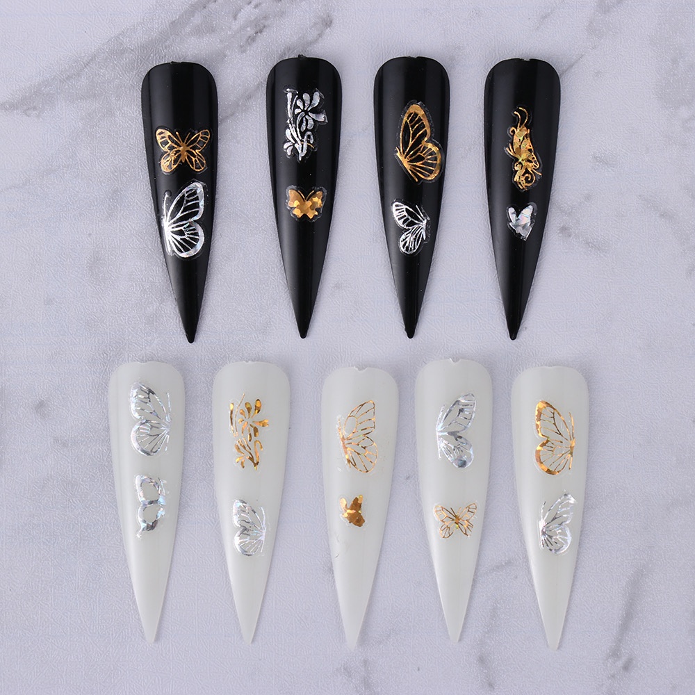 Giới thiệu Miếng Dán Trang Trí Móng Tay Họa Tiết Bướm 3D Nhiều Kiểu Màu Vàng/ Bạc