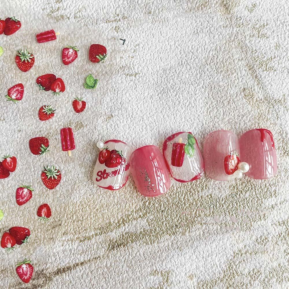 Giới thiệu Miếng Dán Trang Trí Móng Tay 5D Hình Trái Dâu / Cam Xinh Xắn