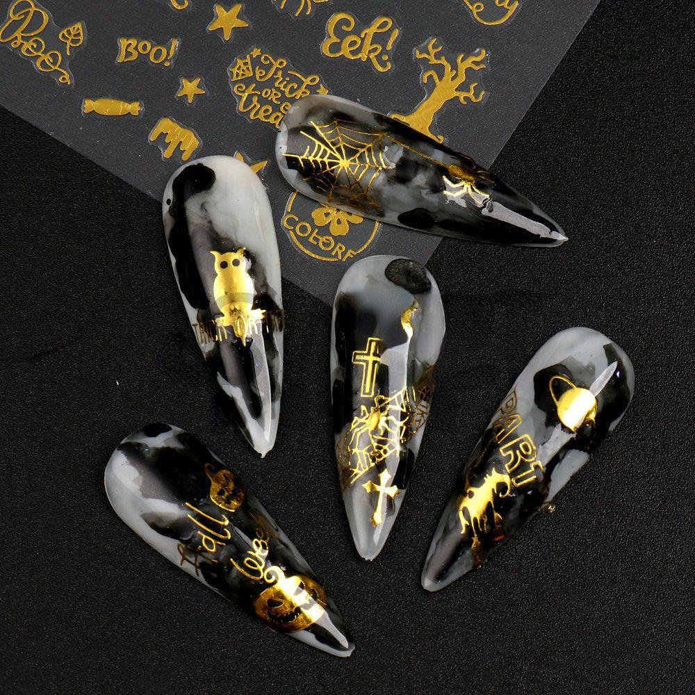 Một loạt các thiết kế để lựa chọn. màu móng phong phú . Halloween Bộ nhãn dán móng tay Dán nhãn dán Làm móng tay Đề can nghệ thuật trang trí móng tay Salon móng tay Holographic Bí ngô Nhện Phù thủy Dơi 3D DIY 9 cái