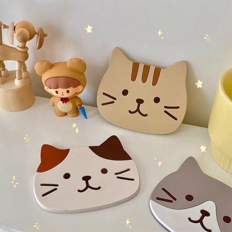 Thiết kế đầu Kitty sáng tạo Tấm lót ly cà phê / Chống đóng cặn Miếng dán mềm chống trượt / Đồ dùng bộ đồ ăn gia đình hữu ích thời trang