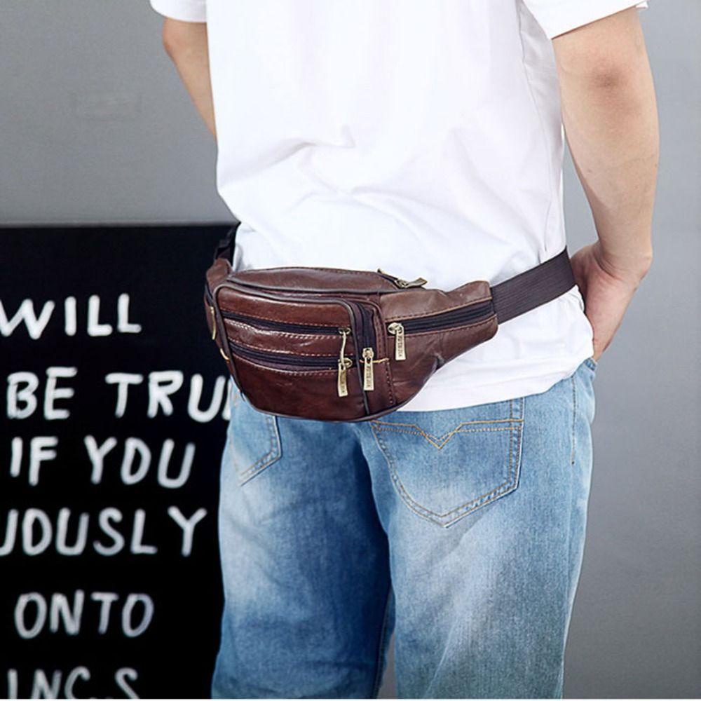 MIHAN1 Túi Đeo Chéo Ngực / Thắt Lưng Bằng Da Thật Chống Nước Sức Chứa Lớn Có Khóa Kéo Cho Du Lịch