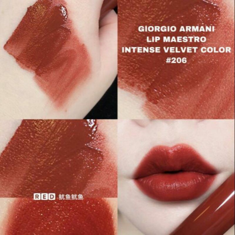 Son Giorgio Armani Lip Maestro 206 : Cedar là thỏi son nâu đỏ gạch sang xịn hết nấc, pha chút sắc cam, cho ánh nhìn sexy, bí ẩn. - Với những nàng makeup "sương sương", thỏi son này phù hợp để đánh lòng môi, rất nhẹ nhàng mà vẫn sang chảnh. - Trong khi đó với những ai cá tính, hay makeup đậm thì tone màu son này không có gì để chê, đánh full môi mới toát lên hết thần thái, quyến rũ và thu hút.
