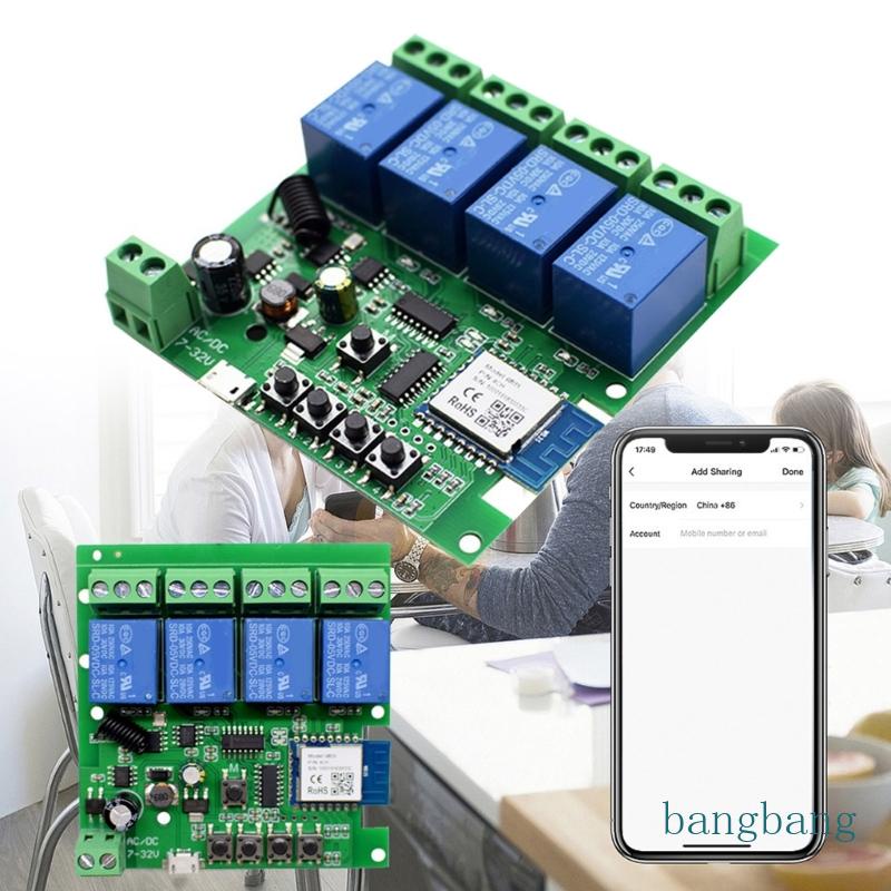 Mô-đun chuyển đổi ánh sáng WiFi Công tắc không dây điều khiển bằng ứng dụng cuộc sống thông minh 4CH Tính năng - Công tắc thông minh 4CH RF-WiFi, hỗ trợ điều khiển WiFi . Chức năng chia sẻ dễ dàng có thể mời các thành viên trong gia đình tận hưởng điều khiển từ xa và tận hưởng sự tiện lợi và niềm vui của ngôi nhà thông minh cùng nhau . Hỗ trợ đóng mở từ xa các thiết bị gia dụng , chẳng hạn như đèn , ấm đun nước điện , nồi cơm điện , rèm điện , v.v . Nó được sử dụng rộng rãi trong dụng cụ mở cửa nhà để xe tự làm và các thiết bị gia dụng khác , chẳng hạn như công tắc , máy bơm nước bể cá , bộ định tuyến , v.v . Hỗ trợ điều khiển bằng giọng nói , điều khiển trợ lý giọng nói. điều khiển APP trên điện thoại di động và điều khiển ngôn ngữ đa quốc gia .