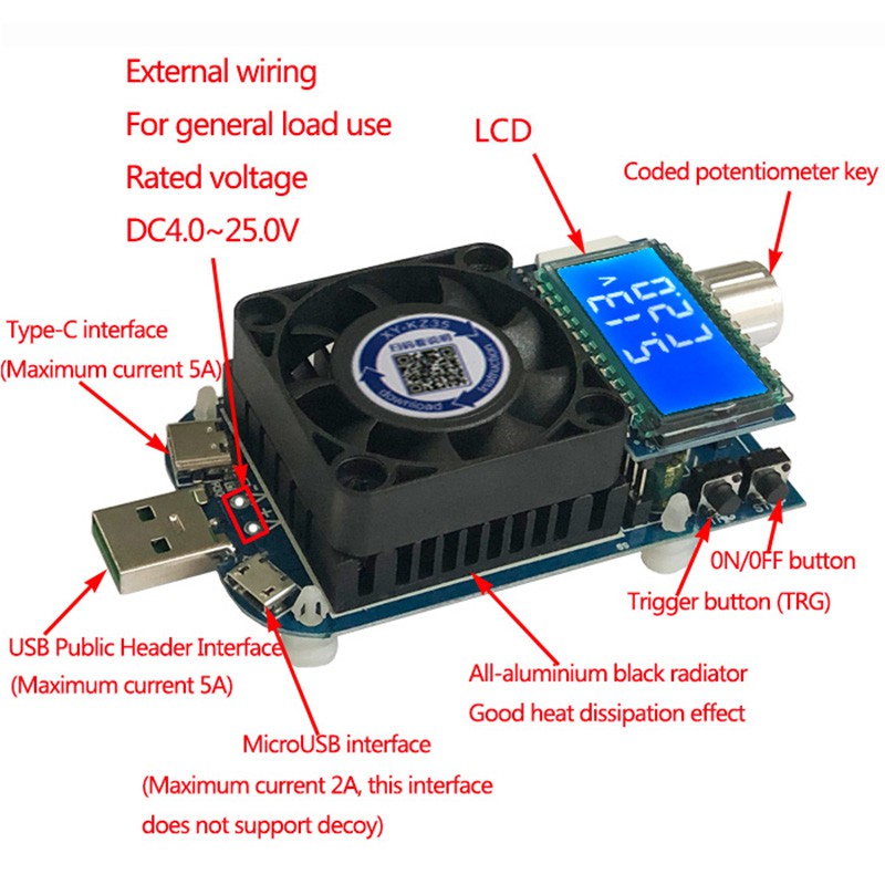 Mô Đun Tải Điện Tử Không Đổi Dòng Điện KZ25 DC4-25V 25W USB Type C QC2.0 / 3.0 AFC FCP