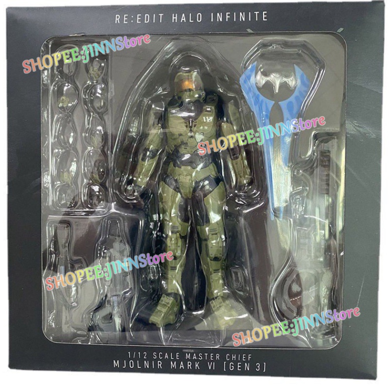 Jinn 18cm Re: Chỉnh sửa Halo Infinate 1/12 Scale Master Chief Mjolnir Mark VI Gen 3 Action Figure Model Đồ chơi Trang trí bàn Hiện tại cho trẻ em