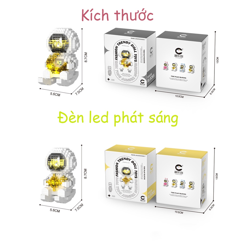 Mô hình lắp ráp lắp ghép xếp hình 3d mini cute phi hành gia có đèn phát sáng cho bé trai bé gái - Luckykid