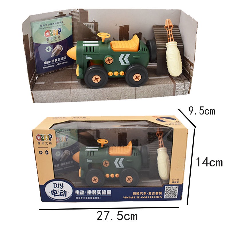 -CHI TIẾT SẢN PHẨM: • Set gồm các sản phẩm riêng lẻ là các mẫu xe lắp ráp, đi kèm là tua vít để các con có thể tìm tòi nghiên cứu cả ngày không chán. Sau khi hoàn thiện, bé có ngay 1 chiếc xe động lực chạy pin siêu ngầu. Thỏa mãn và kích thích bé tìm hiểu các chi tiết, sự sắp xếp logic, tính kiên trì và tìm tòi giải đáp các thắc mắc tại sao. • Màu sắc sản phẩm tươi sáng, bắt mắt, thiết kế ngộ nghĩnh, dễ thương, bé sẽ thích ngay từ cái nhìn đầu tiên. • Chất liệu sản phẩm an toàn, ba mẹ hoàn toàn yên tâm khi cho con chơi mà học với đồ chơi cho bé. • Cách chơi: Bố/mẹ hướng dẫn bé cách tháo và lắp các sản phẩm để ghép thành 1 chiếc xe hoàn chỉnh giúp bé tập làm quen với các đồ vật chi tiết và có thể tìm hiểu lịch sử khi các sản phẩm mô phỏng hình dáng của các phương tiện cơ giới đầu tiên của thế giới.