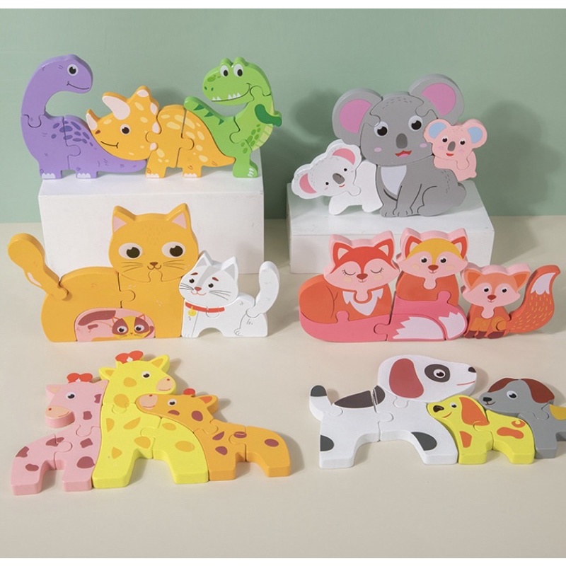 Giới thiệu Mô hình tranh ghép hình gỗ puzzle gia đình động vật cao cấp, miếng ghép dày dặn